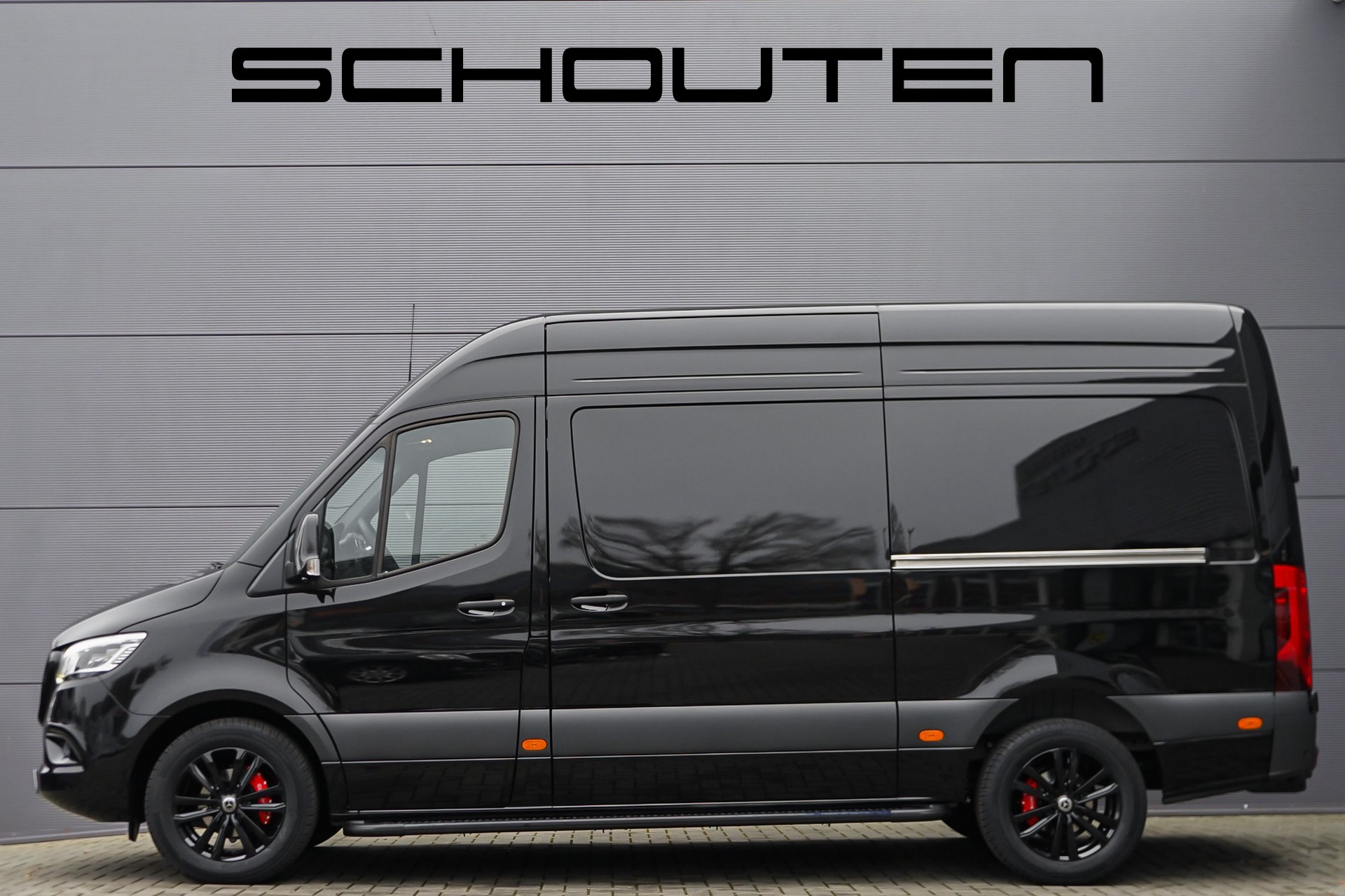 Autobedrijf Schouten biedt u deze gloednieuwe Mercedes-Benz Sprinter 319 1.9 CDI L2H2 RWD Facelift aan, met de juiste opties. De prijs is zoals afgebeeld, met lichtmetalen velgen, Black Pack, Panamericana grille, trekhaak 3.500 KG, en vloerplaat. Deze nieuwe Sprinter heeft een rijklaar prijs van 76.129 Euro Ex. BTW, dat is dus 6.229 euro korting! Het exterieur van de Sprinter is uitgevoerd in de kleur: 'Obsidianschwarz', gecombineerd met een zwart interieur. Verder beschikt de Mercedes-Benz Sprinter over een mooie lijst met fabrieksopties, waaronder: