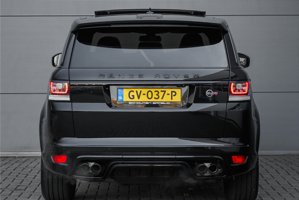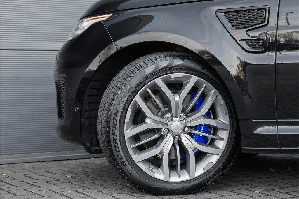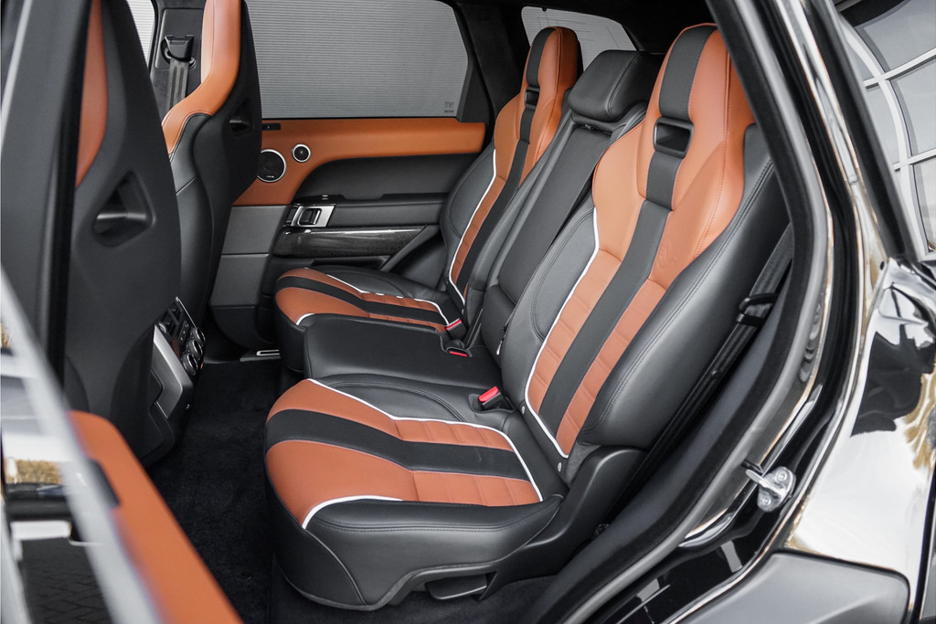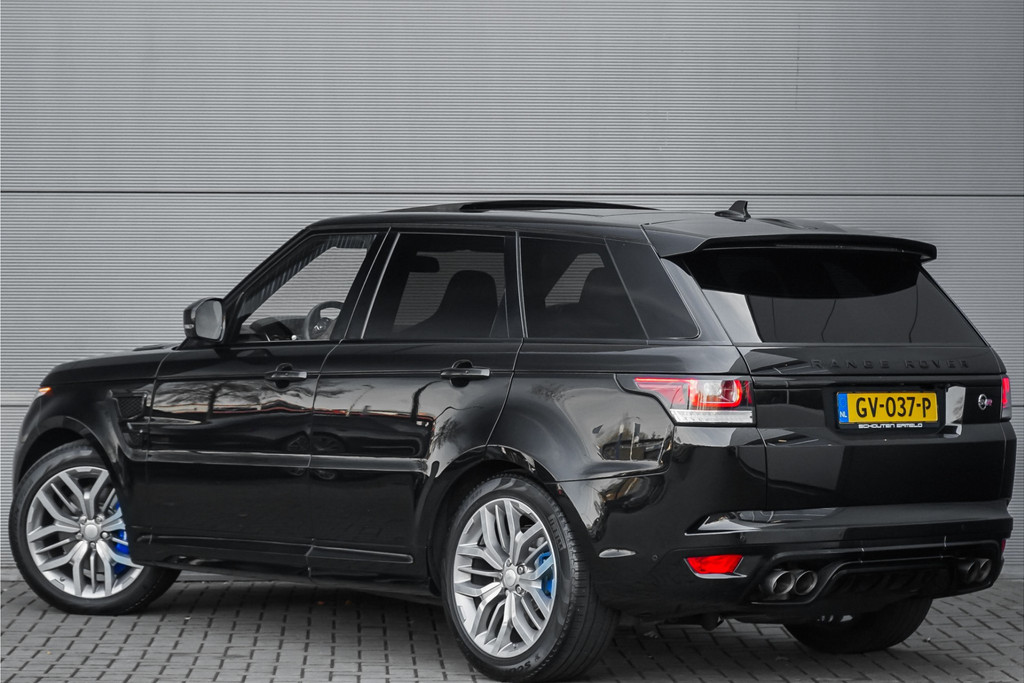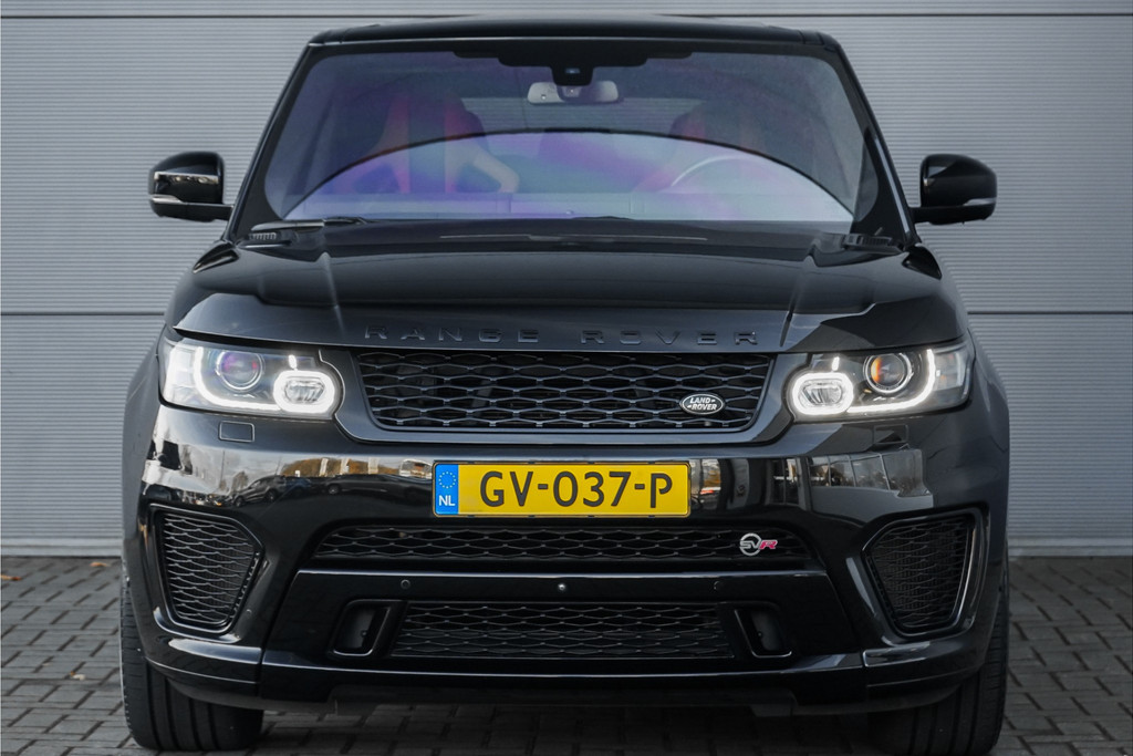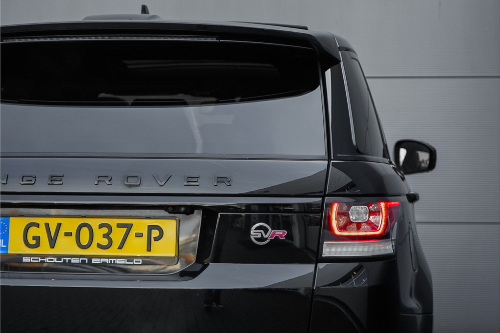 Autobedrijf Schouten biedt u deze unieke en zeer nette Land Rover Range Rover Sport 5.0 V8 Supercharged SVR aan! Perfect onderhouden, en in sublieme staat. De auto is afkomstig van de eerste eigenaar, en is origineel in Nederland geleverd. De auto is alleen een keer van zakelijk naar privé gezet. Het exterieur van deze dikke Range Rover Sport 5.0 V8 SVR is uitgevoerd in de diepe metallic kleur: 'Santorini Black', gecombineerd met een luxe lederen interieur met schaalstoelen. Deze zijn afgewerkt in een two-tone combinatie van bruin met zwart. Verder beschikt de Range Rover Sport 5.0 V8 Supercharged SVR over een hele lange lijst met opties. Hieronder ziet u een greep uit deze optielijst: