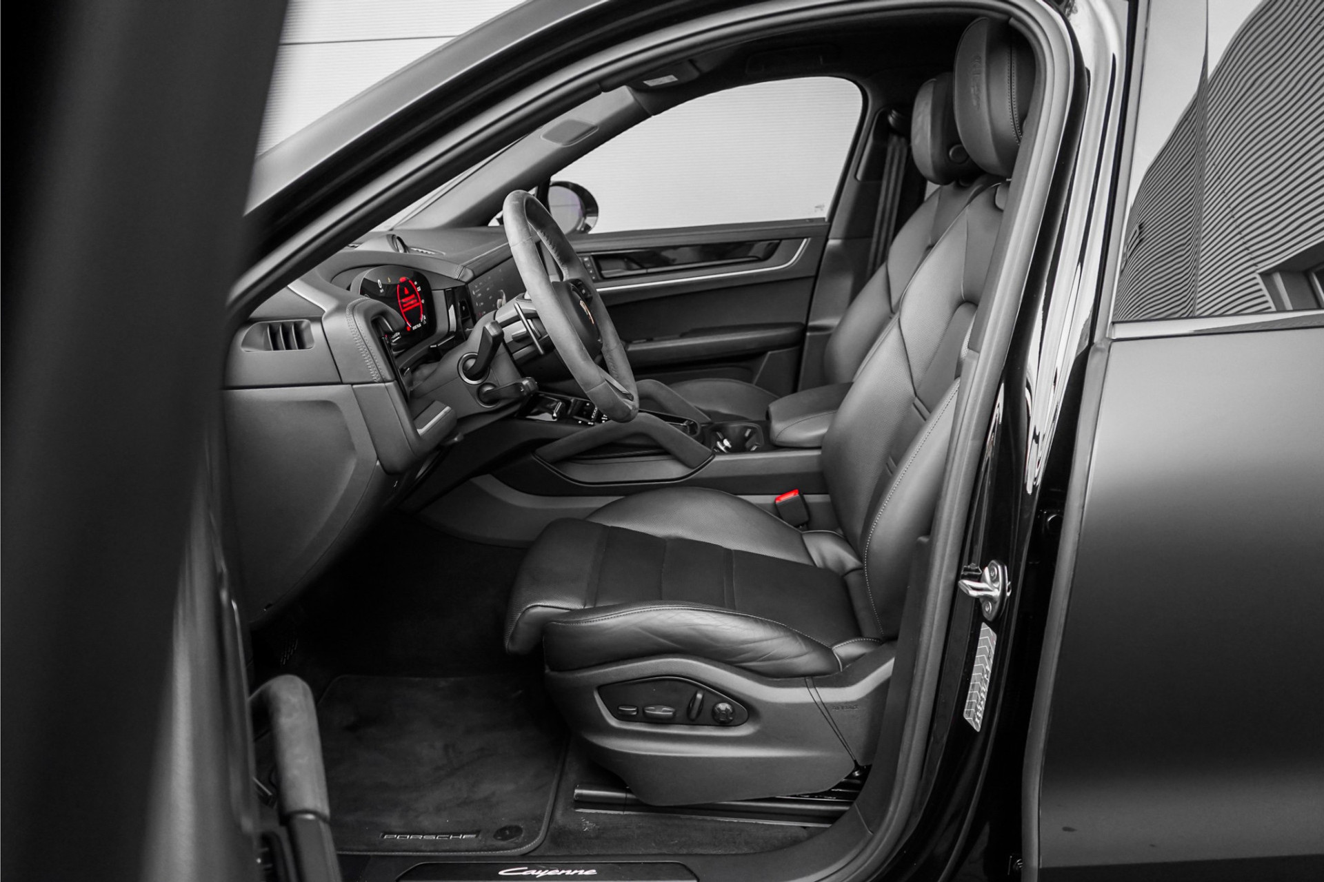 Autobedrijf Schouten biedt u deze zeer compleet uitgevoerde en in sublieme staat verkerende Porsche Cayenne Coupé 3.0 E-Hybrid Sport Design aan, origineel Nederlands afkomstig van de 1e eigenaar, met nog maar 21.160 KM NAP. Het exterieur van de Porsche Cayenne Coupé is uitgevoerd in de diepe metallic kleur: 'Chromiteschwarz', welke volledig in de matte PPF folie is gezet. Dit beschermt de lak, en zorgt voor een uniek uiterlijk. Het interieur is tevens afgewerkt in prachtig zwart leder, met de 14-wegs elektrisch verstelbare comfortstoelen. De nieuwprijs van deze prachtige Porsche is 174.145,= euro, zonder alarm en de matte PPF folie. De fabrieksgarantie loopt nog tot en met 19-03-2026. Verder beschikt de Porsche Cayenne Coupé 3.0 E-Hybrid Sport Design over een mooie lijst met fabrieksopties. Denk hierbij aan opties zoals: