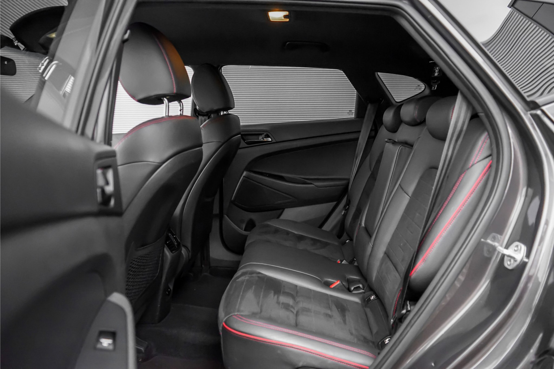 Autobedrijf Schouten biedt u deze Hyundai Tucson 1.6 T-GDI N-Line aan, onderhouden bij de Hyundai dealer Barten Amsterdam. Het exterieur van deze Tucson N-Line is uitgevoerd in de metallic kleur: 'Moon Rock Metallic', gecombineerd met een zwart interieur met sportieve rode N-Line accenten. Verder beschikt de Hyundai Tucson 1.6 T-GDI N-Line over een mooie lijst met opties. Denk hierbij aan opties zoals: