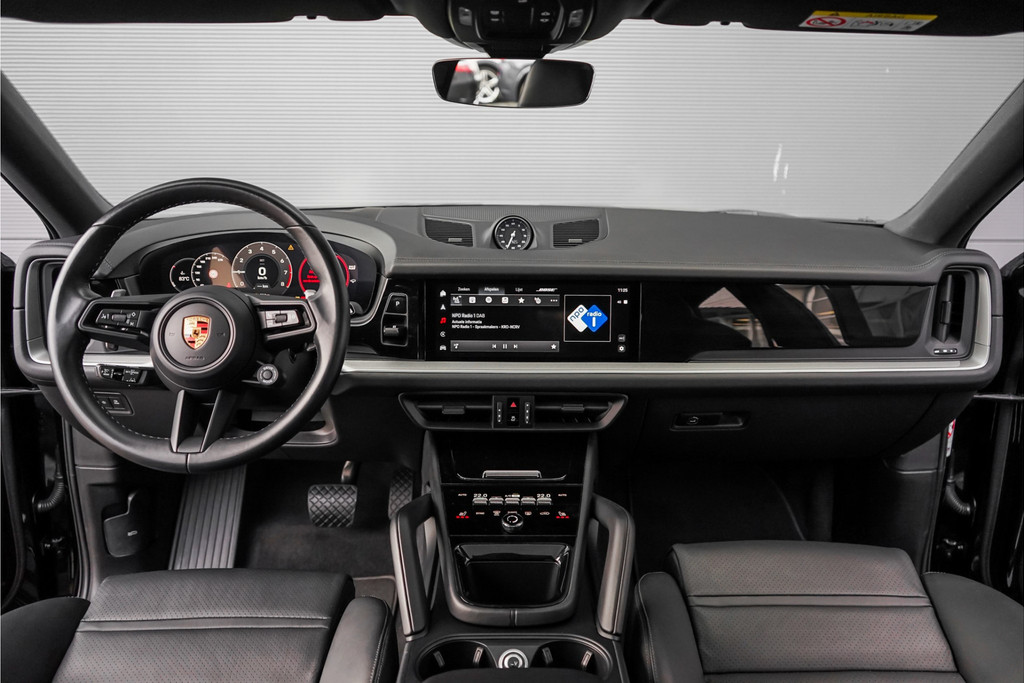 Autobedrijf Schouten biedt u deze Porsche Cayenne Coupé 3.0 E-Hybrid Black Edition Sport Design aan, een zeer complete auto met nog maar 53.460 KM. Het exterieur is uitgevoerd in de diepe metallic kleur: 'Chromiteschwarz', gecombineerd met een zwart lederen bekleding. Verder beschikt de Porsche Cayenne Coupé 3.0 E-Hybrid Black Edition Sport Design over een mooie lijst met fabrieksopties. Hieronder ziet u een kleine greep uit deze optielijst:
