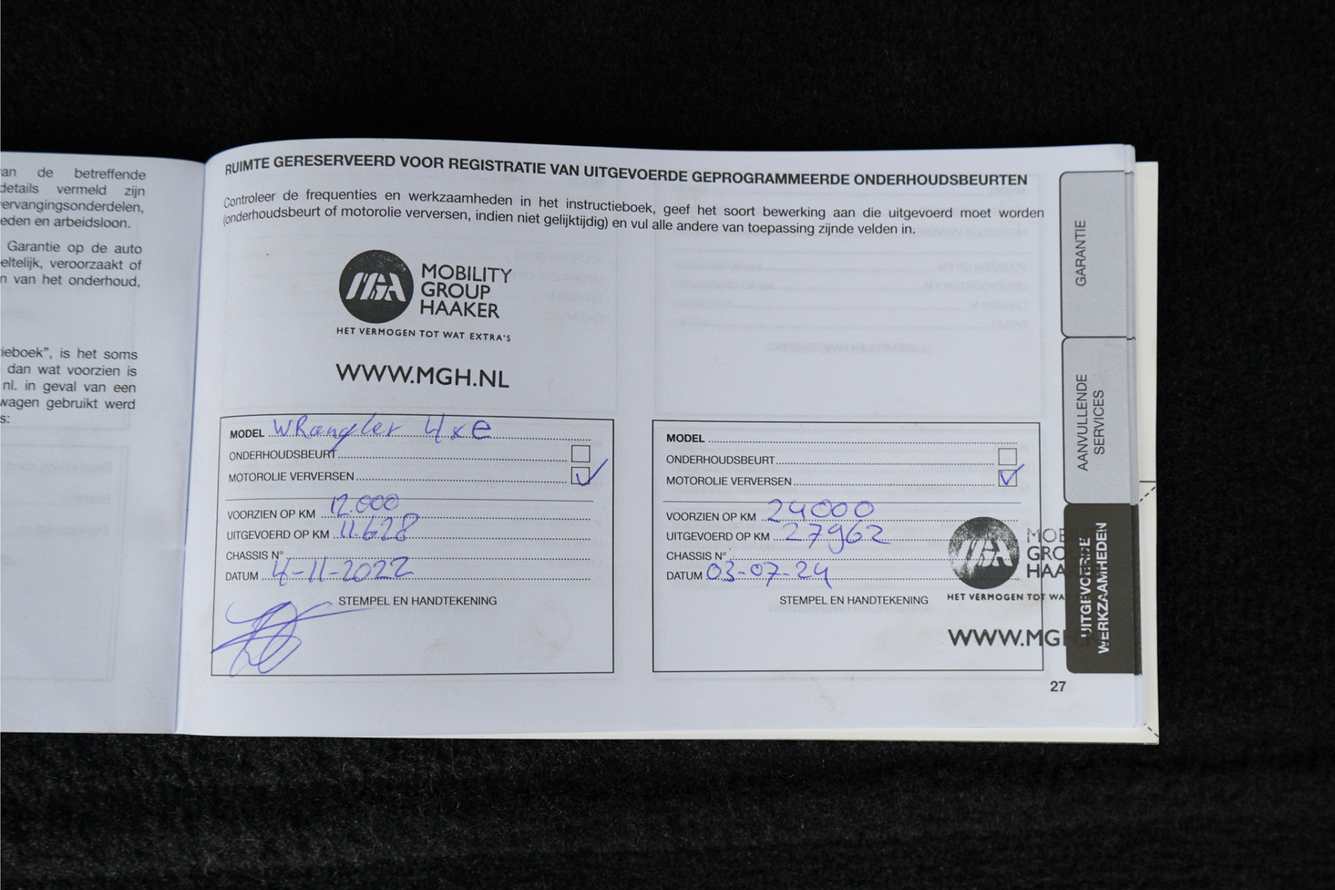 - Onderhoudsboekje aanwezig?