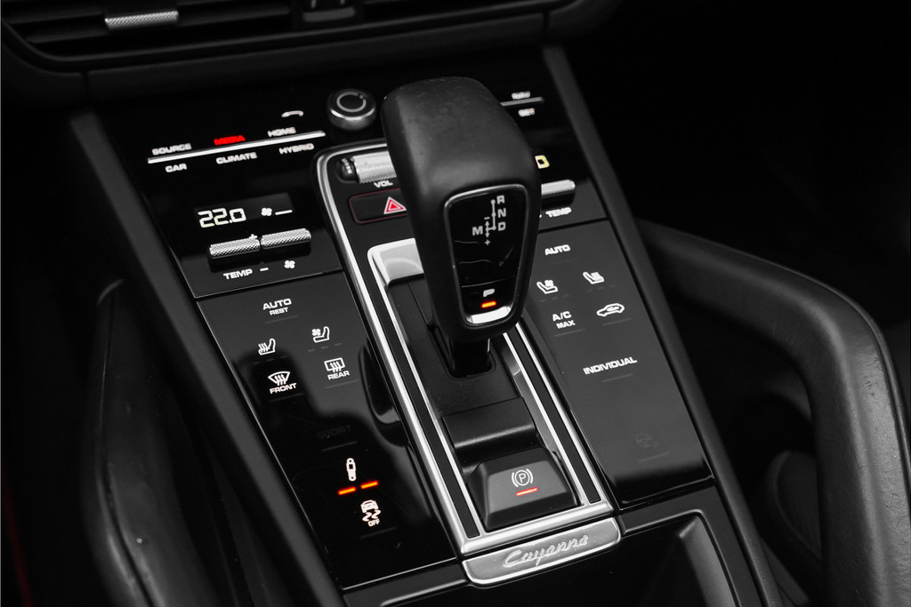 Autobedrijf Schouten biedt u deze Porsche Cayenne 3.0 E-Hybrid Sport Design aan, origineel Nederlands met nog maar 71.593 KM NAP. Het exterieur is uitgevoerd in de prachtige metallic kleur: 'Dolomitsilber', gecombineerd met zwarte accenten en een zwart lederen interieur. Verder beschikt de Porsche Cayenne 3.0 E-Hybrid Sport Design over veel opties, waaronder: