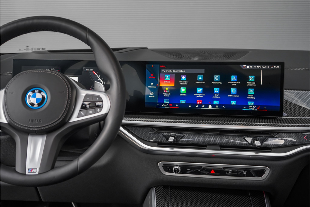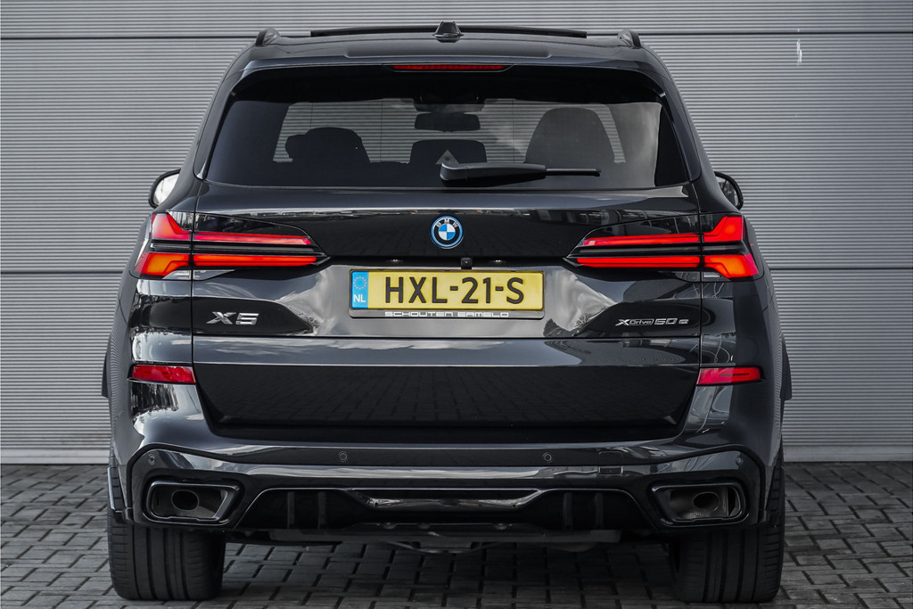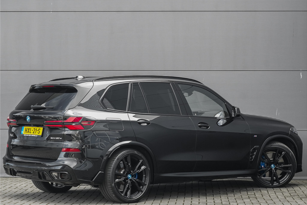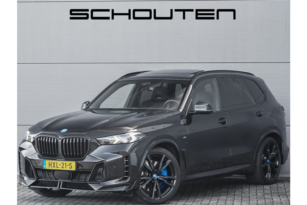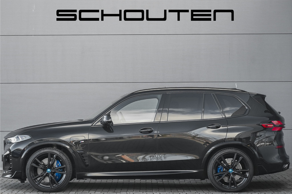 Autobedrijf Schouten biedt u deze zeer vol uitgevoerde BMW X5 xDrive50e M-Sport Pro aan, met nog maar 18.030 KM. Het exterieur is uitgevoerd in de diepe metallic kleur: 'Saphirschwarz', gecombineerd met een black pack en sportieve lip kit rondom. Dit is gecombineerd met een zwart merino lederen interieur met M-Sportstoelen en carbon. Verder beschikt de BMW X5 xDrive50e M-Sport Pro over een flinke lijst met fabrieksopties. Hieronder ziet u een greep uit deze optielijst: